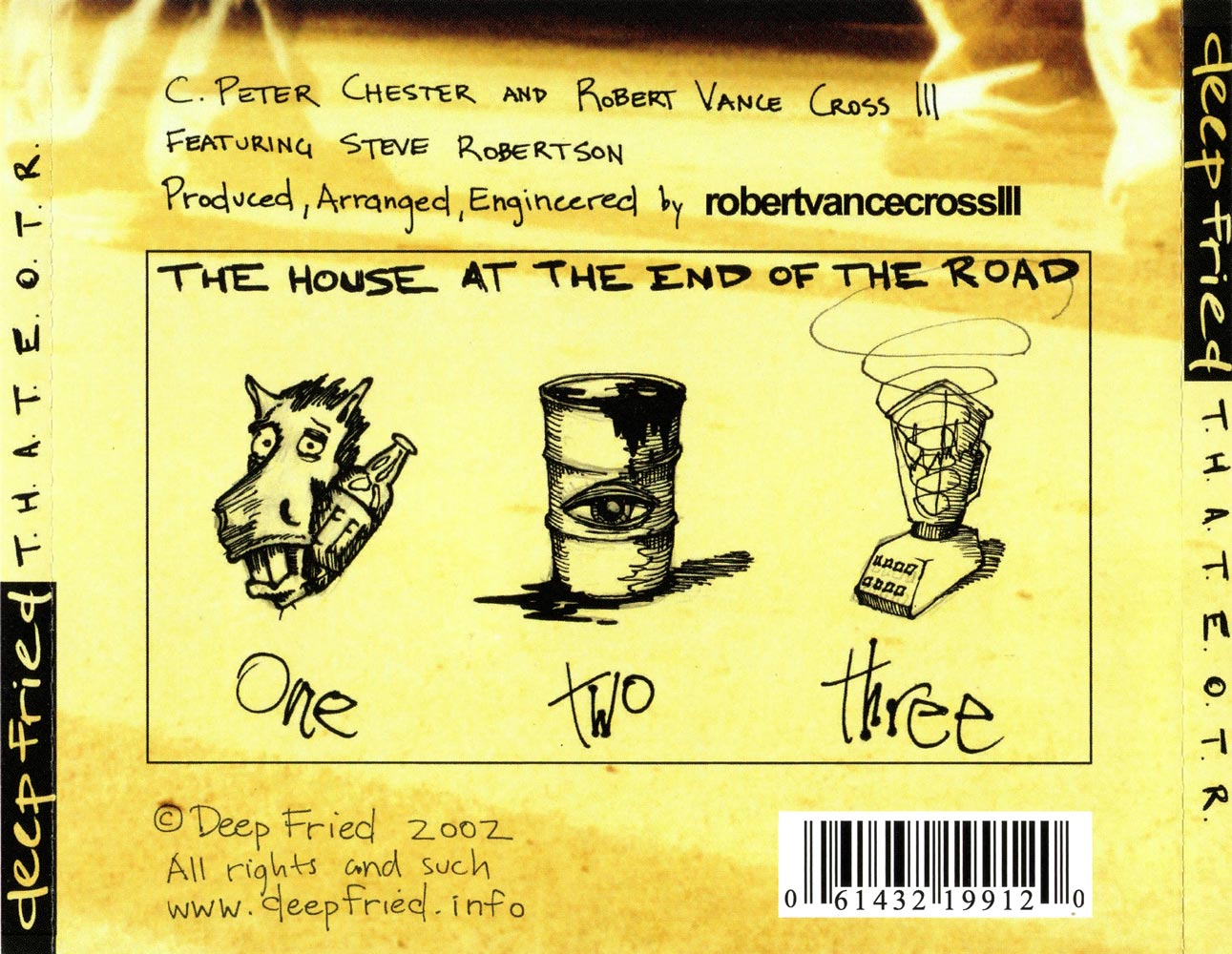 The House at the End of the Road (T.H.A.T.E.O.T.R. circa 2002) is a unique album in both sentiment and mood. The overall structure and method is based in classic studio style recording techniques. Being that the emphasis is on recording, this album is sonically clean, delivering a heavily premeditated musical landscape.